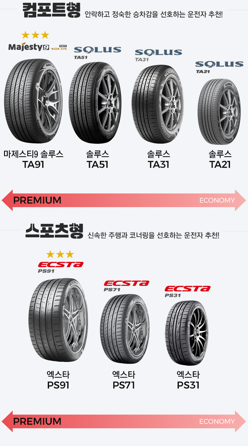 | 금호타이어 | 마제스티 X | 최고급 프리미엄 | 18만~23만원 |